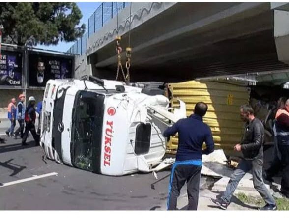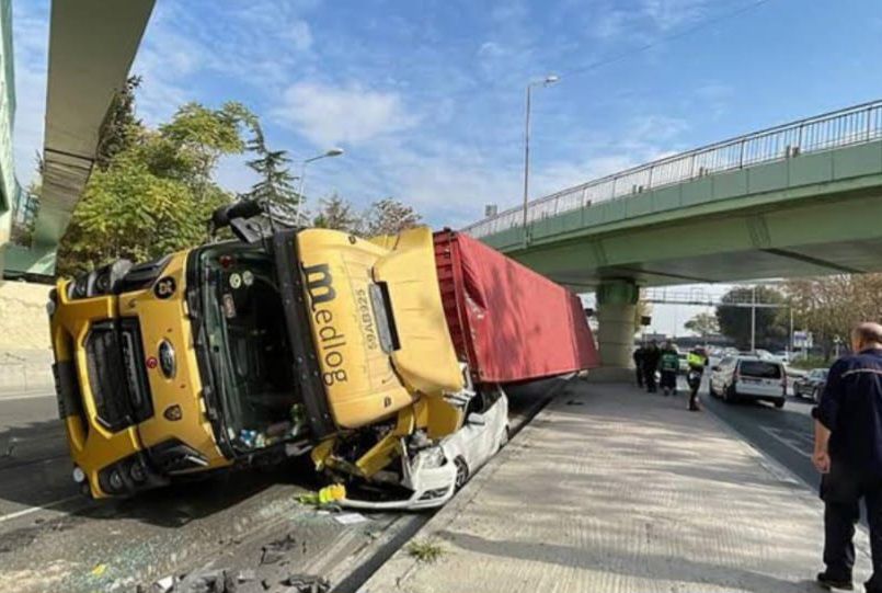Bakırköy’de üst geçite çarpan tır